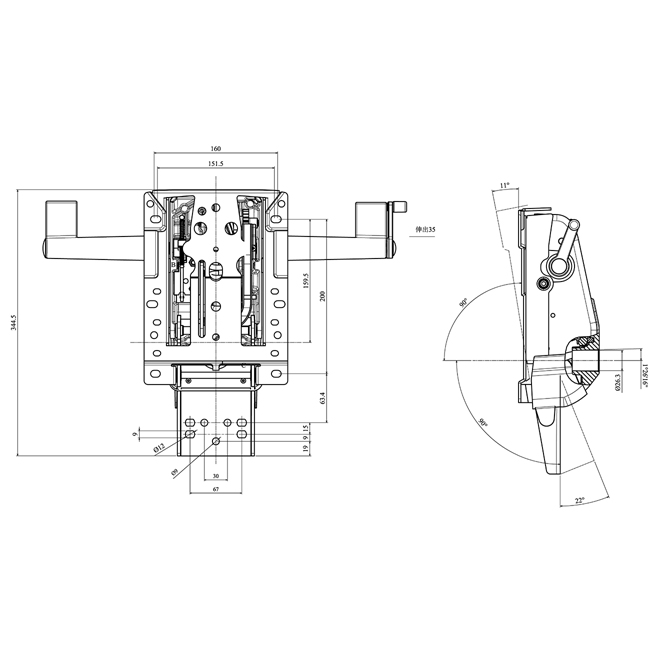 • 倾仰角度5级锁定0 ~ 22°。