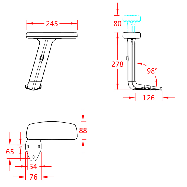 • 材料:尼龙玻纤扶手支架 ,有TPU或PU扶手面选配。